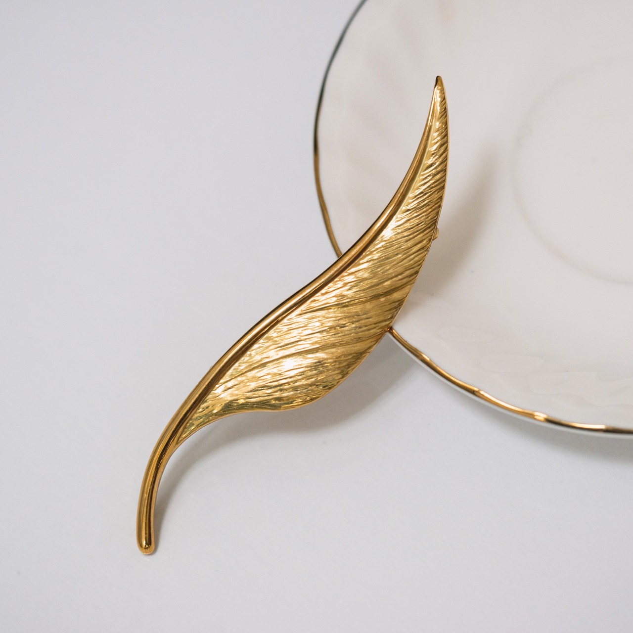 軸部分が鏡面仕上げで羽根部分は艶消し仕上げになっている 綺麗でなだらかな曲線のブローチ♡ 曲線だからこそ色々な角度で付け易く 重宝しそう。