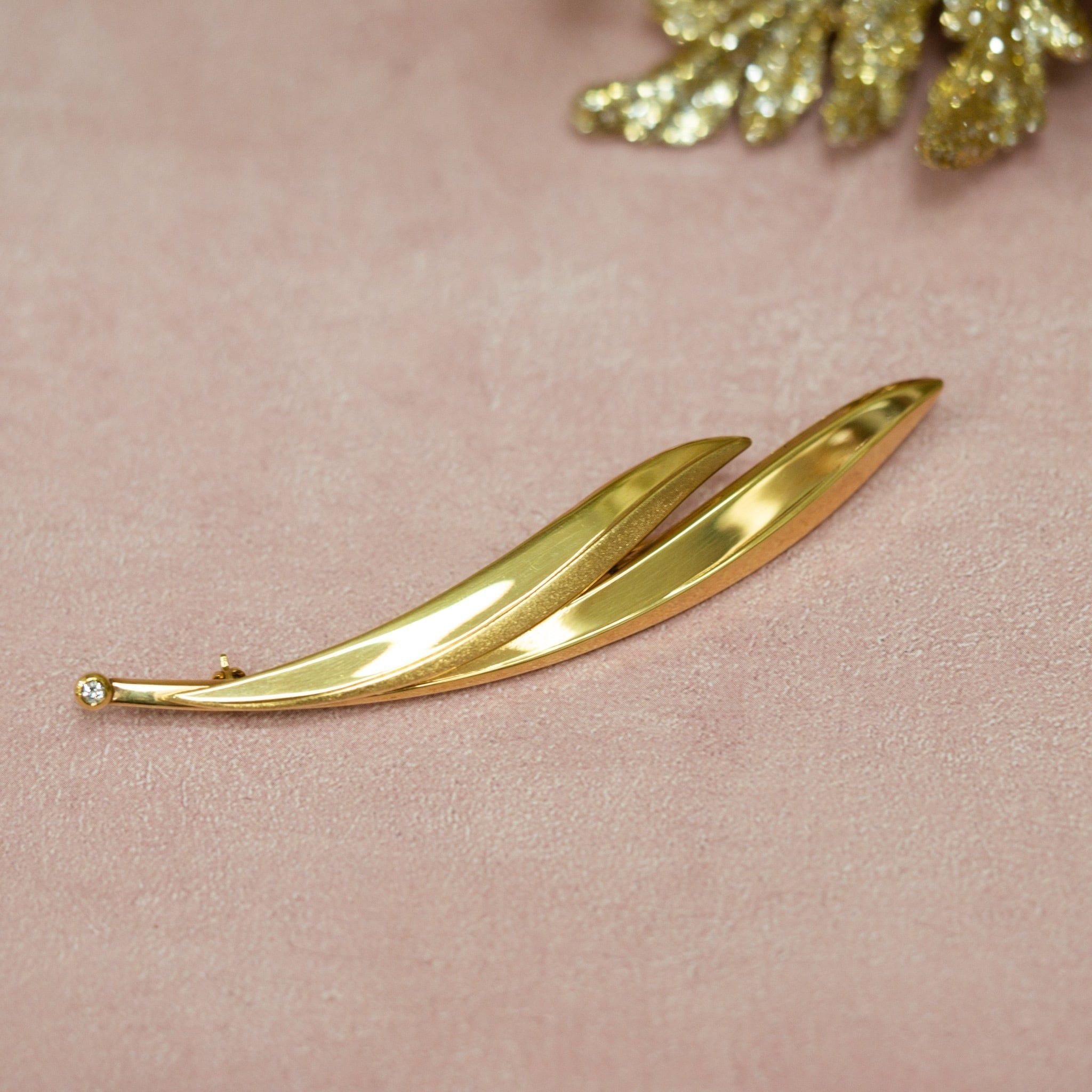 鏡面仕上げ部分と艶消し部分があるので立体的で流れるようなブローチになってますね。